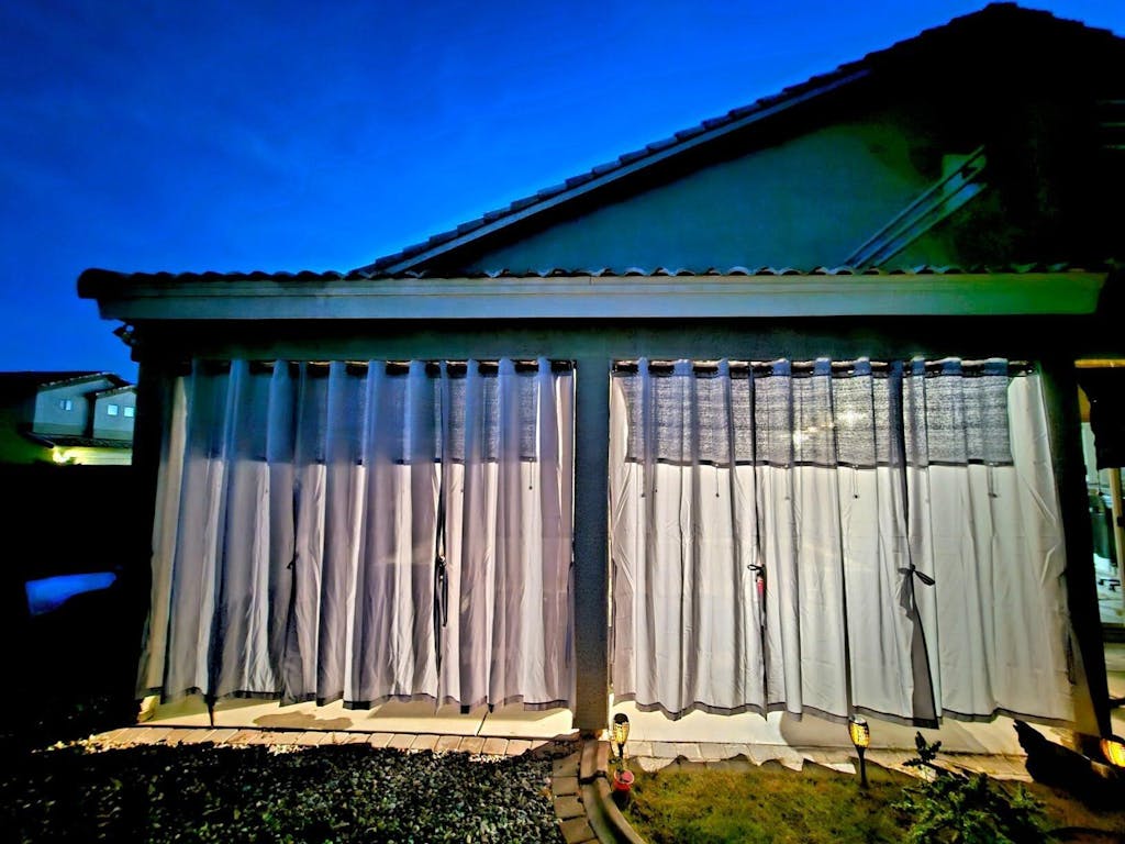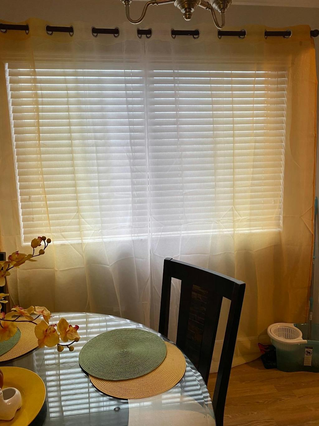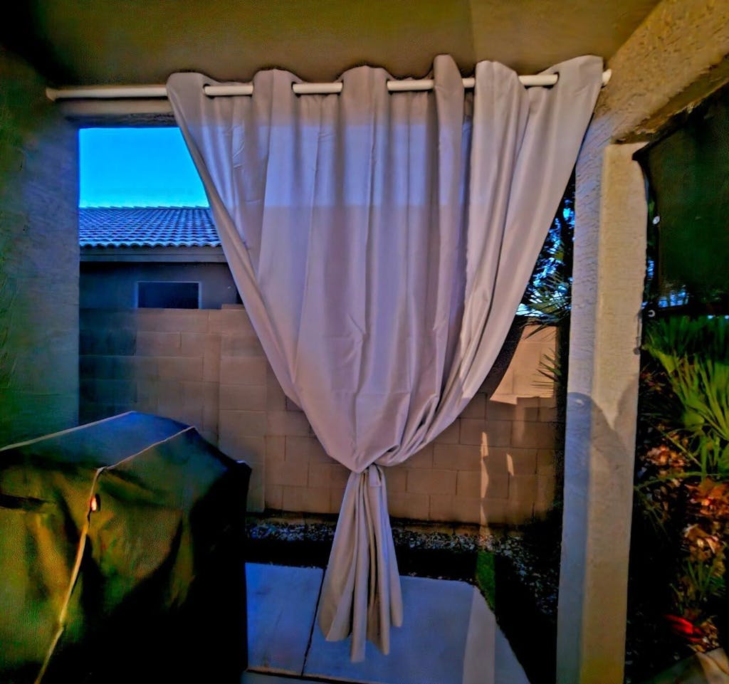 It actually looks better than I was hoping for and blocks the light well when it’s fully closed. This is pure white but my pic shows the glow of the patio light since it’s nighttime, so ignore that. Very pretty and functional!