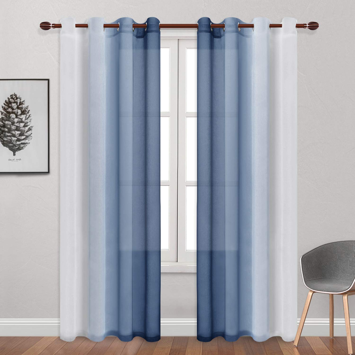 This curtain added elegance to window treatments and overall appearance of the room, Woven from durable polyester fibers. They have a subtle color transition from center to edge, the depth of color at the edge that gradually shallows at the center to a softer white. Ethereal and elegant these panels will soften any window providing a beautiful diffusion of light without sacrificing privacy.