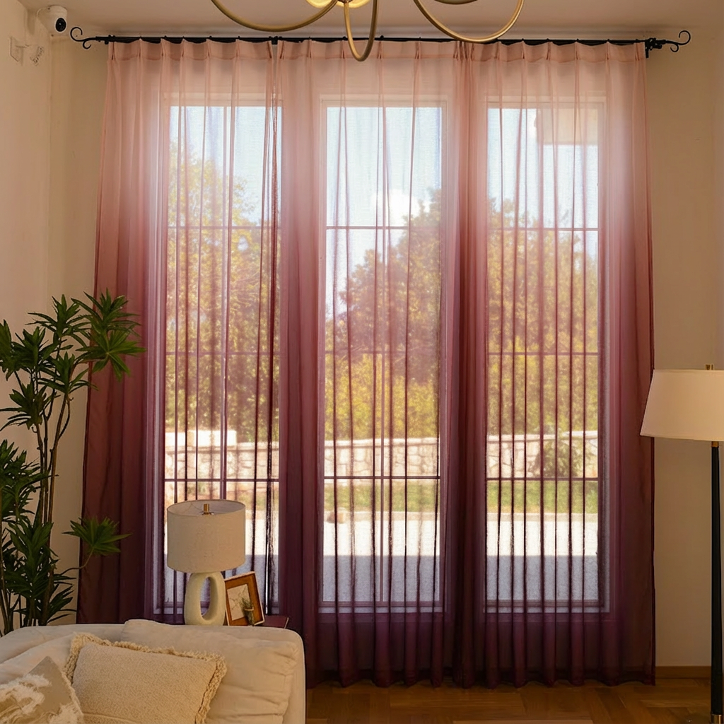 Vertical Ombre Linen Texture Sheer Curtains elegantly balance natural light and privacy, creating a soft, airy ambiance in any living space. Their semi-sheer fabric gently filters sunlight, reducing glare while maintaining a bright and inviting atmosphere. The graceful vertical ombre design adds visual depth and a touch of sophistication, seamlessly blending with various decor styles. Ideal for both living rooms and bedrooms, these curtains provide subtle room-darkening effects and enhanced privacy without feeling heavy. Crafted for those who appreciate both elegance and function, they transform your space with light, texture, and understated style.