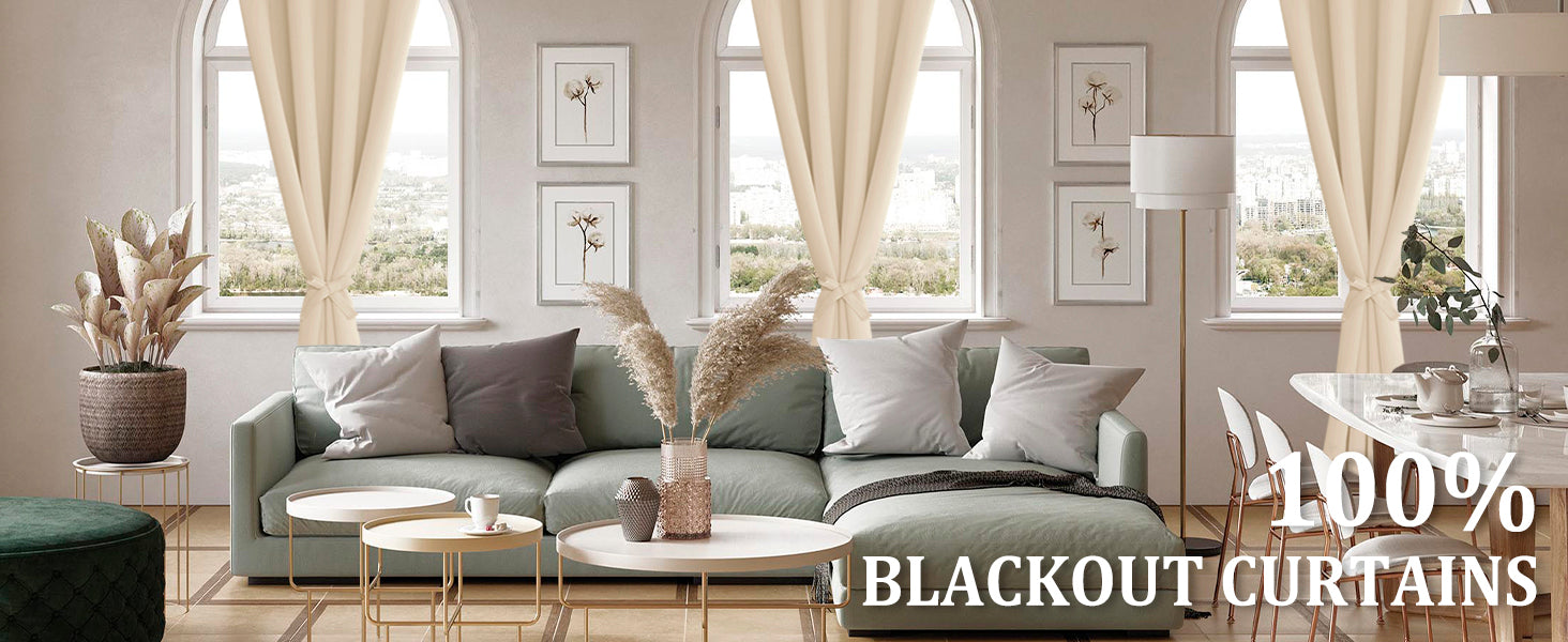 DWCN 100% Blackout Curtains with Tiebacks, Set of 2 Panels