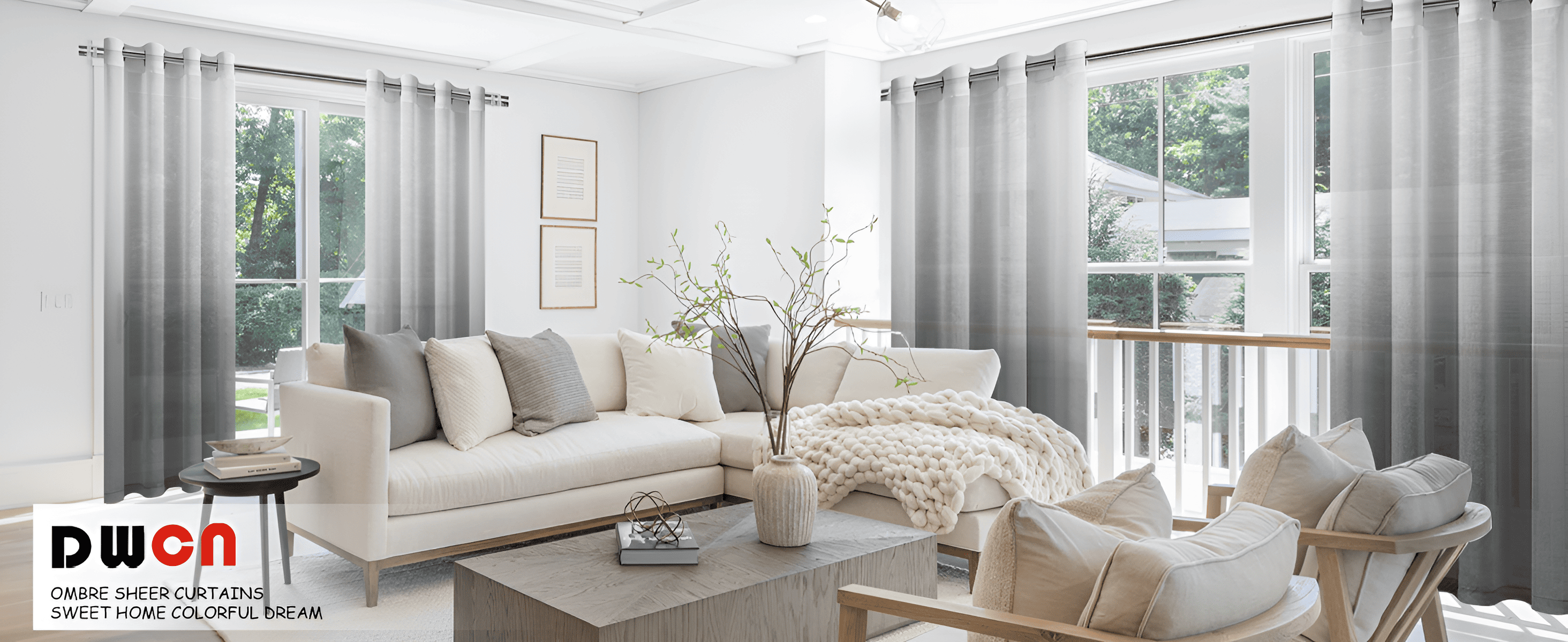 DWCN Faux Linen Ombre Sheer Curtains, Set of 2 Panels