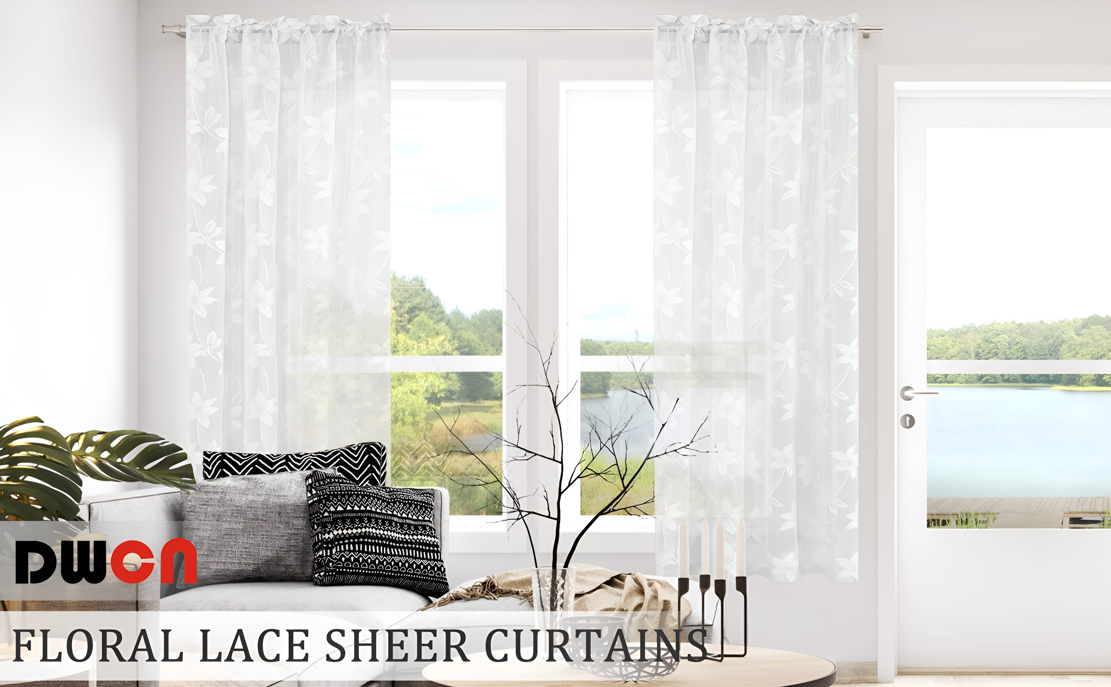 DWCN Lace Sheer Curtains, Set of 2 Panels