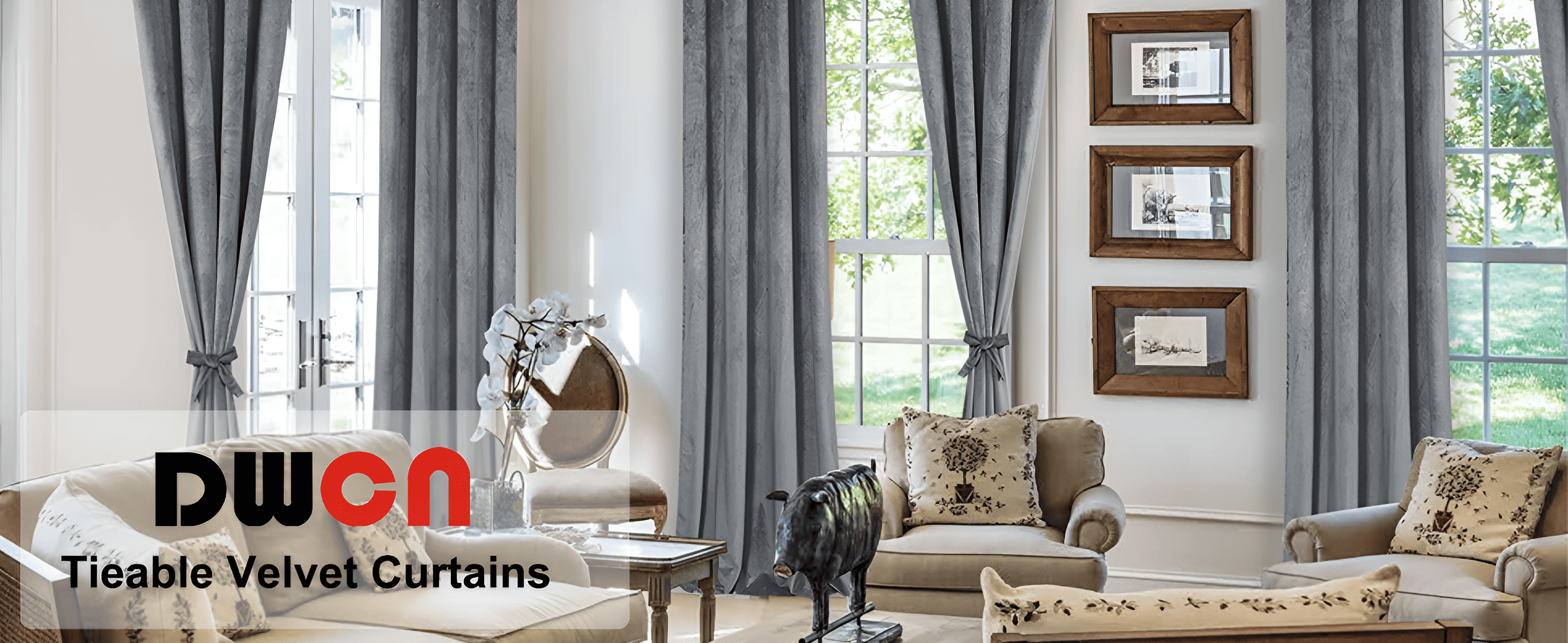 DWCN New Tieback Velvet Curtains have a soft, silky texture and comfort. The surface of the curtains has a glossy finish and beautiful texture, creating an elegant and warm atmosphere in the room.