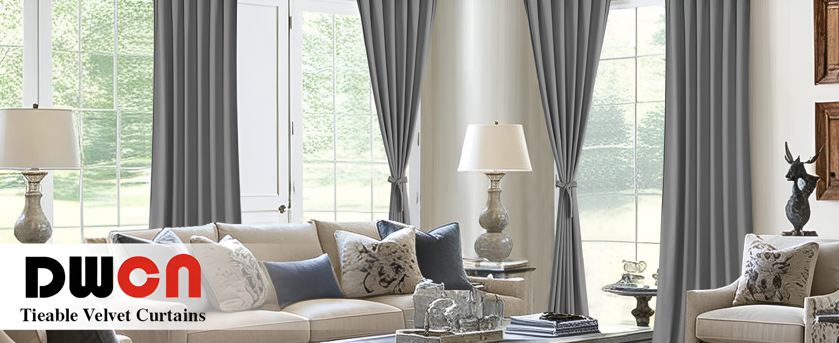DWCN New Tieback Velvet Curtains have a soft, silky texture and comfort. The surface of the curtains has a glossy finish and beautiful texture, creating an elegant and warm atmosphere in the room.